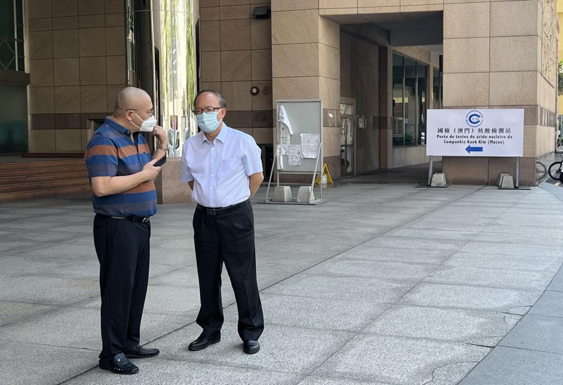 2022 年 9 月 3 日,中國(guó)中檢外部董事陳書堂赴中國(guó)中檢澳門公司進(jìn)行調(diào)研指導(dǎo)工作,實(shí)地考察澳門綜藝館核酸檢測(cè)站、望廈核酸檢測(cè)站、光輝核酸檢測(cè)站及光輝核酸檢測(cè)實(shí)驗(yàn)室,看望及慰問(wèn)一線員工,聽取員工匯報(bào)日常工作流程、防護(hù)措施、物資儲(chǔ)備情況、陽(yáng)性處理流程及實(shí)驗(yàn)室操作等。陳書堂外部董事就中國(guó)中檢澳門公司工作提出了建設(shè)指導(dǎo)意見,中國(guó)中檢澳門公司執(zhí)行董事許宇星作工作匯報(bào)。